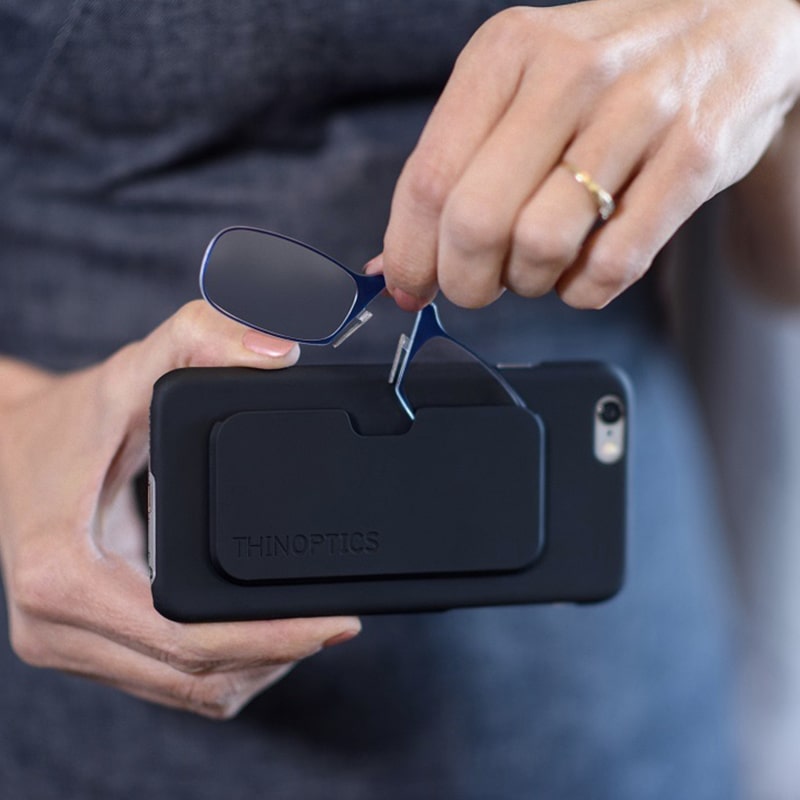 Made from brushed stainless steel with PVD coating for increased impact strength and excellent abrasion resistance, the ThinOptics Readers + Black Flashcard looks great and securely holds your reading glasses.